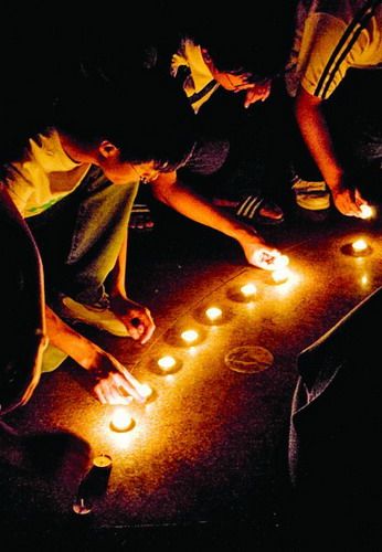 “大家都蹲下吧,风要把蜡烛吹灭了。”一名女生看烛光在风中忽明忽暗,小声向大家说道。于是,学生们轻轻地走到蜡烛的外围,每个人都安静地守着,蜡烛继续燃起。