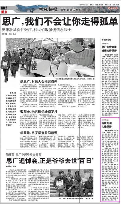 冯思广在校时最好的同学、现中国食品发酵工业研究院的仇凯哽咽着告诉记者:“我这个弟兄很普通,从不喜欢出头露面,他平时很低调,拍个照片都是往后躲,凡事从不争强好胜,跟同学从没红过脸。”谈起冯思广为国捐躯的事,仇凯感慨地说:“他这么低调的人,我想这应该是他这辈子做的最超乎寻常的事情,我为他骄傲。”