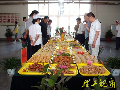 本站讯 “‘理工美食行——面食节’邀你走进食堂共赏美食”、“激发创新意识,提升服务水平,共建和谐饮食”、“练内功,比奉献,创特色,争第一”,食堂外,一条条醒目招展的横幅洋溢着节日般的热情;走进食堂,崭新的面食窗口,精致的花色品种,大胆的美食创意,无不吸引着就餐师生的眼光,各色面食物美价廉,引人驻足。这就是5月18日至28日,饮食服务中心举办的“理工美食行——面食节”活动,十天时间,缤纷美食秀在各食堂精彩亮相。