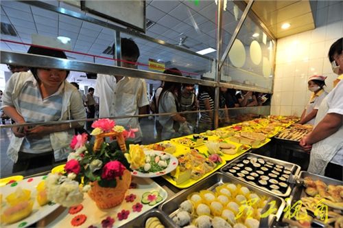 经过周密的前期准备和动员,5月18日,“理工美食行——面食节”拉开帷幕。各食堂都精心策划,挂上崭新的专用窗口标识,每顿推出新品面食,用心做事的态度和花色丰富的创意收获了学生的赞许。不少学生表示,面食节为每天的就餐时光增添了不少快乐和惊喜。据悉,面食节期间,各食堂共准备了多达五百种特色面点与广大师生见面。5月24日至27日,集中评比展示分别在西、东两个校区食堂内进行,各食堂精心准备,布置专用展台,将食堂装点一新。评比过程由专业评委和随机学生调查两部分组成,专业评委针对该食堂面食的品种数量、质量口感、价格、创意等四个方面给予评价,学生评委则对该食堂的面食制作和服务进行全面的考量。经过评比,第四食堂摘得第一名,金园餐厅、第三食堂分获二等奖,第二食堂、第一食堂取得三等奖。