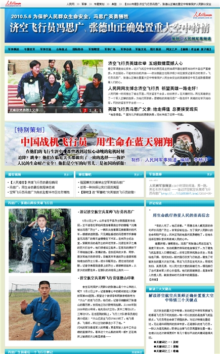 〖人民网〗纪念冯思广专版:济空飞行员冯思广、张德山正确处理重大空中特情