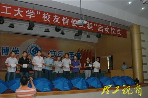 启动仪式上,聘任2010届毕业生的各个班级代表——202名同学、84名辅导员为首届“山东理工大学校友信使”,并为他们颁发了“校友信使”证书。校友联谊办公室的负责人具体解析了“校友信使工程”的工作规划。张元利代表学校发表了热情洋溢的讲话,强调了实施“校友信使工程”的重要意义,勉励被聘为“校友信使”的同学和辅导员,要带着高度的责任心和崇高的使命感做好信使工作,并对“校友信使”乃至全体毕业生表达了的美好祝愿和希望,要以我校优秀校友冯思广同学为榜样,心系母校,奉献社会、服务人民、报效祖国。