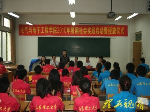 7月15日下午,电气与电子工程学院2010暑期社会实践活动暨授旗仪式在13号教学楼315教室举行。校团委副书记赵明以及该院相关负责人参加启动仪式。学院党总支副书记王延深要求同学要深入实践,充分发挥积极性、主动性和创造性,坚持理论与实践相结合,在社会的大熔炉中得到历练和提高;要注重成效,紧扣主题、突出重点、关注热点,结合当前新形势和新情况,开动脑筋,不断创新,服务群众,锻炼自我,服务社会和国家。此次实践活动该院共派出5支重点实践队,分赴济南、潍坊、日照、连云港、晋中,事件焦点集中于关注新农村建设、乡村支教、工业环保、保护母亲河等。启动仪式后,各团队将陆续奔赴基层,走进乡镇、农村、街道、企业开展社会实践活动。
