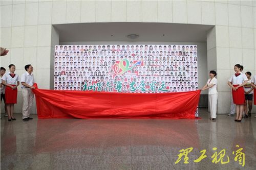 最后,会议在艺术中心礼堂入口处举行山东理工大学志愿者微笑墙揭幕仪式,校团委书记王介忠、学生工作处副处长宋红丽为高2.5米宽5米的微笑墙揭幕,由400余名赛会志愿者的笑脸组成的志愿者微笑墙象征着理工大志愿者服务省运、无私奉献的志愿精神,博得志愿者的阵阵掌声。志愿者微笑墙将被放置在我校省运会“志愿者之家”。