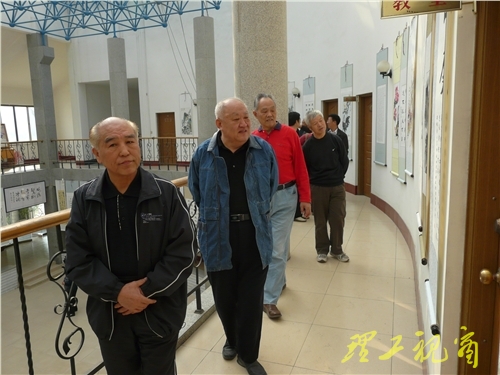 这次书画展由离退休工作处和我校老年书画学会举办。展览共展出作品160余件,包括书法、绘画、篆刻、刻瓷、剪纸等门类,是近几年来展出规模最大的一次老年书画展。展览题材广泛,形式多样,风格迥异,意蕴隽永。这些作品大都是我校广大老年书画爱好者和老年绘画班苏振兴老师及学员们创作的书画精品。作品以丰富的思想内涵,精湛的艺术手法,赞美了和谐美好的幸福生活,充分展示了广大老同志老有所学、老有所为的精神风貌。他们的作品,富有强烈的时代气息和浓厚的艺术魅力,观后既给人以赏心悦目的艺术享受,又使人从中受到深刻的教育和启迪。