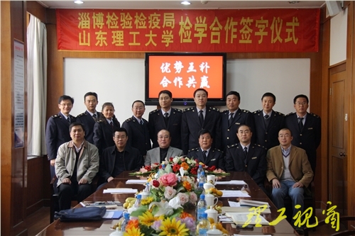 本站讯 11月2日,我校与淄博检验检疫局签订科技合作协议,就“检学合作”有关事宜达成共识,这标志着山东理工大学与淄博检验检疫局的科技合作掀开了崭新的一页。我校党委常委、副校长杜瑞成,淄博检验检疫局局长李金山出席签字仪式,我校教务处、科研处、分析测试中心以及淄博检验检疫局相关负责人参加签字仪式。
