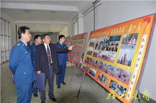 座谈结束后,邱火林一行在国防教育学院、驻校选培办负责人的陪同下,参观了国防教育学院、国防生公寓楼、国防生专用教室等,对我校国防生培养工作给予了充分肯定。工作组在驻校选培办会议室与国防生代表就学习、训练、日常生活情况等进行亲切座谈,并向3名部队返校读研的国防生了解部队生活的感受,鼓励他们扎根基层,有所作为。国防生纷纷表示将加倍努力学习,打牢军政素质基础,锤炼过硬的作风,磨砺坚强的意志,为空军的现代化建设贡智献力。
