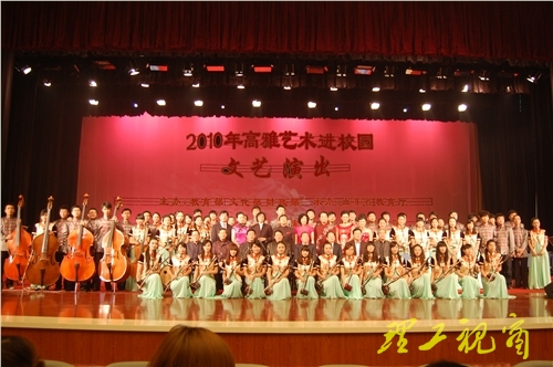 本站讯 11月16日晚,我校大学生艺术中心礼堂乐音嘹亮,灯火辉煌,由教育部、文化部、财政部联合举办、山东省教育厅承办,山东理工大学协办的山东艺术学院青年民族乐团2010年高雅艺术走进校园首场演出在此举行。淄博市市委常委、常务副市长王顶岐,山东艺术学院党委书记柳文敏,山东省教育厅体卫艺处处长张德珠,山东青年政治学院纪委书记化旭,山东工会管理干部学院副院长荀方杰,淄博市教育局副局长尹玉法,校党委书记都光珍,党委副书记、校长张新义,党委副书记谭秀森出席。