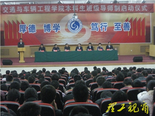 本站讯 为充分发挥教师在学风建设中的主导作用和人才培养过程中的指导作用,使创先争优活动与学风建设活动紧密结合,11月18日,交通与车辆工程学院本科生班级导师制启动仪式在3号教学楼报告厅举行。校党委副书记谭秀森、校长助理邹广德出席会议,党委宣传部、学生工作部、教务处等相关职能部门负责人和该院师生代表400余人参加了启动仪式。