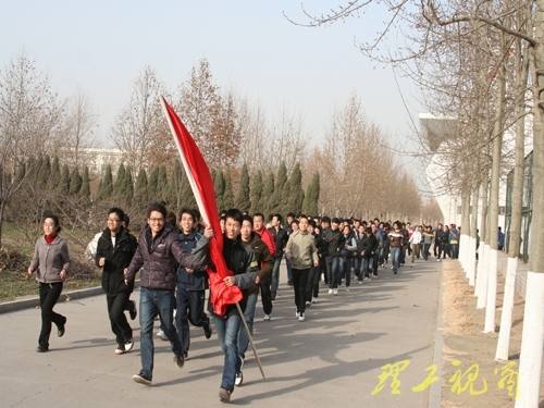 “一二·九”万米接力赛开始后,阳光体育冬季长跑活动也随之开始,来自22个院(部)代表队依次从第二体育场向南,途经图书馆、三号教学楼、南门和第二餐厅到一体为止。活动旨在号召同学们积极进行冬季体育锻炼,提高身体素质,受到广大学生一致好评。