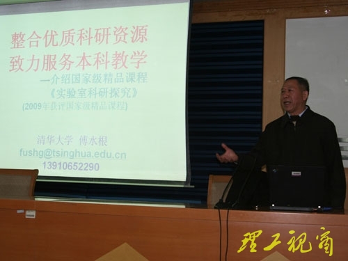 本站讯 12月16日下午,应学校邀请,国家教学名师、清华大学基础工业训练中心主任、《机械制造实习》国家级精品课程负责人傅水根教授到我校进行精品课程建设及教学经验交流活动。