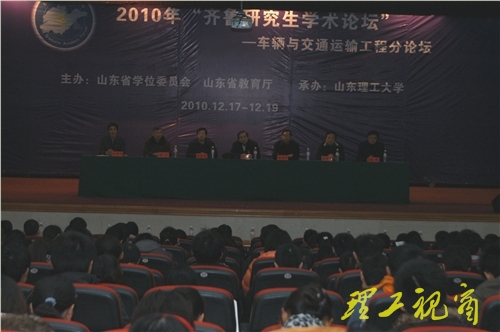 本站讯 12月17日至19日,由山东省人民政府学位委员会、山东省教育厅主办、我校承办的2010年“齐鲁研究生学术论坛—车辆与交通运输工程分论坛”在我校举行。我校党委常委、副校长吕传毅,省教育厅学位管理与研究生教育处副处长薛立魁以及来自省内10家高校的相关领导、专家、研究生代表及山东理工大学部分导师和研究生400余人参加了本次论坛。