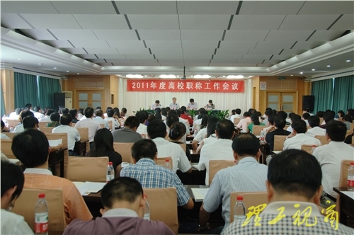 党委副书记、校长张新义代表学校致欢迎辞,他首先对与会的各位教育界同仁表示热烈欢迎,然后简要介绍了我校的总体情况以及学校近年来在人事制度改革方面做的一些有效探索。省教育厅人事处处长陈国前讲话,对2011年度高校职称工作进行了部署;省教育厅人事处副调研员蒋文莉对职称政策及材料报送进行了解读和说明;与会代表对职称有关政策要求以及学术检索等问题进行了分组讨论。