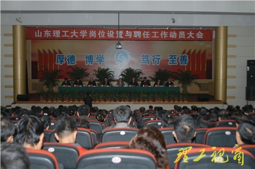 校长张新义作动员讲话。他指出,实施岗位设置与聘用制度是高校深化人事制度改革、落实推进事业单位分类改革的需要,是高校创新人事体制机制,推动学校各项事业又好又快发展的现实要求。实施岗位设置与聘用制度的基本要求是“因事设岗、按岗聘用、以岗定薪、合同管理”,旨在进一步转换用人机制,打破身份管理,创新高校人事管理体制机制,建立结构优化、素质良好、富有活力、精干高效的教职工队伍。