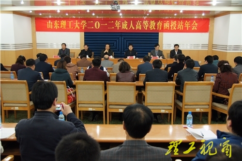 会上,王学真简要介绍了学校的总体情况,充分肯定了我校近年来成人高等教育所取得的成绩,希望我校的成人高等教育工作要继续巩固和提高办学质量,提升办学声誉。远程与继续教育学院院长江世成作了题为《凝心聚力 科学发展 全面提升学校成人高等教育办学水平》的工作报告,总结了2011年工作,对2012年的重点工作进行了部署。远程与继续教育学院党总支书记孙维君宣读了《山东理工大学关于表彰2011年度成人高等教育函授工作先进单位、先进工作者的决定》。东营、龙口、淄川函授站作了典型发言。会上,还对2012年函授教育教学管理工作进行了安排。