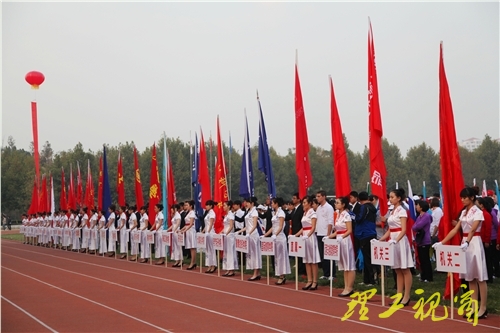 伴着激昂的运动员进行曲,运动员、裁判员入场。运动会总裁判长、体育学院院长李丰祥宣布了运动会比赛成绩,运动会体育道德风尚奖评选委员会主任、党委宣传部部长崔乃林宣读了体育道德风尚奖名单。在阵阵掌声和欢呼声中,主席台领导为获奖单位颁发了奖杯和奖牌。