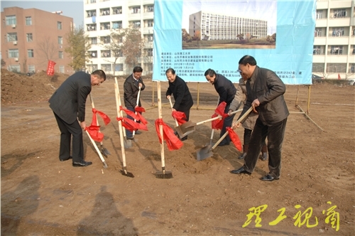 在热烈的鞭炮声中,都光珍、张新义、张宇声等与施工、监理单位相关负责人共同为新建学生公寓奠基培土。