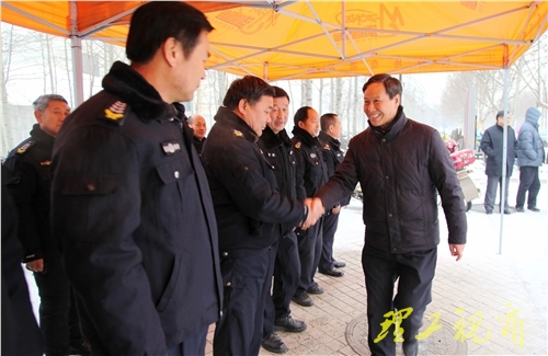 张新义、张宇声、衣玉琛一行先后来到学校花园餐厅、1号学生公寓、锅炉房、学校东门、西开闭所、物业管理中心维修部及东校区南门和换热站,看望坚守在一线的工作人员,对他们节日期间坚守岗位、勤奋工作表示感谢,并代表学校向他们及家人表示节日的问候和祝福。张新义、张宇声、衣玉琛一行还专程到学区派出所,对干警们一年来的辛苦工作表示感谢,并代表学校和广大师生为他们送上节日最真挚的祝福。