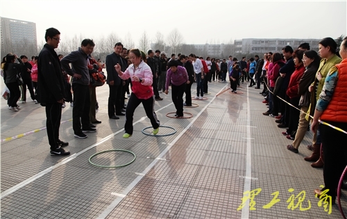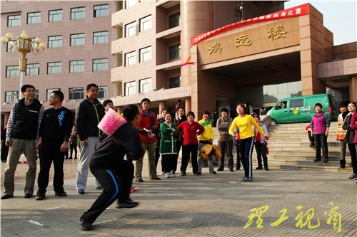 本网讯 搭桥过河、踢毽入筐、双人跳绳……3月7日下午,充满趣味的体育活动使女教职工们放下了一年的忙碌,用欢声笑语将整个校园装扮成欢乐的海洋。为活跃校园文化生活,让女教职工度过一个充实、快乐的节日,进一步激励广大女教职工为创建和谐校园、促进学校发展做出新贡献,校工会、妇委会举办了节俭而又欢快的活动,共同庆祝“三八”国际劳动妇女节。