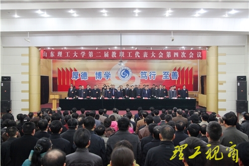本网讯 3月16日上午8时,我校第二届教职工代表大会第四次会议在3号教学楼报告厅隆重召开。校领导都光珍、张新义、张宗新、谭秀森、张元利、王学真、杜瑞成、张宇声、衣玉琛、吕传毅出席会议。会议代表及特邀代表、列席代表参加会议。