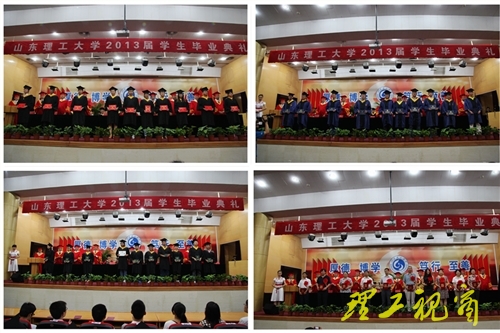 仪式上,校学位评定委员会副主席、副校长邹广德宣读了《山东理工大学关于表彰2013年优秀毕业生的通报》;校学位评定委员会副主席、副校长吕传毅宣读了《山东理工大学学位评定委员会关于授予2013届毕业生学士、硕士学位的决定》;副校长张元利宣读了《关于表彰2013年度“大学时期,我心目中最好的老师”的通报》;校领导为优秀毕业生代表颁发了获奖证书,为毕业生代表颁发了毕业证书和学位证书,为“大学时期,我心目中最好的老师”颁发了获奖证书。