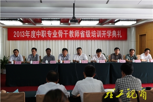 本网讯 7月3日上午,2013年度中等职业学校专业骨干教师省级培训开学典礼在杏园宾馆二楼会议室举行。学校党委常委、副校长张元利,省教育厅职业教育与成人教育处、山东省职教师资培训中心负责人,承担培训任务的相关学院负责人以及来自全省各地的190名中等职业学校专业骨干教师参加了开学典礼。