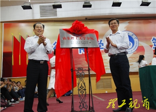 张宏明和都光珍共同为“齐鲁大讲坛•山东理工大学分坛”揭牌。
