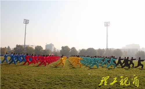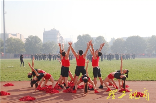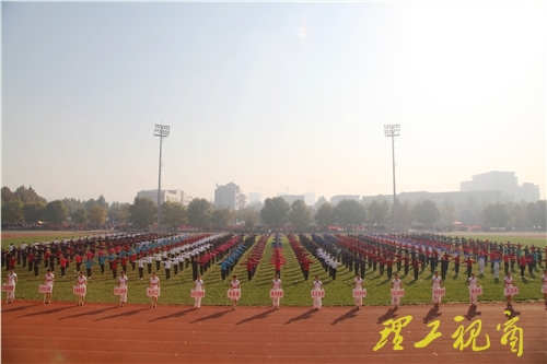上午8点,伴随着我校鼓乐队演奏的激昂的运动员进行曲,在护旗队、花束队、红旗队的导引下,裁判员方队、各代表团运动员方队依次入场,部分方队还在主席台前进行了个性化的形象展示,他们用整齐的步伐和昂扬的精神展示出理工大学人的风采。