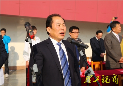 校长张新义致开幕辞。他说,2013年,全校上下深入学习贯彻党的十八大精神,全面实施“十二五”发展规划,进一步解放思想,抢抓机遇,深化改革,创新发展,各项事业呈现出科学发展的良好态势。今年,我校体育事业也取得了喜人成绩,荣获山东省第五届体育教育专业大学生基本功大赛基础理论第1名、团体总分第3名,山东省大学生足球联赛女子足球比赛第一名,山东省大学生乒乓球锦标赛男团亚军、团体总分第3名;另外在山东省大学生田径锦标赛中,我校代表队荣获女子3000米、5000米两项金牌,并取得女子团体总分第4、男子团体第6的成绩,为学校赢得了荣誉。