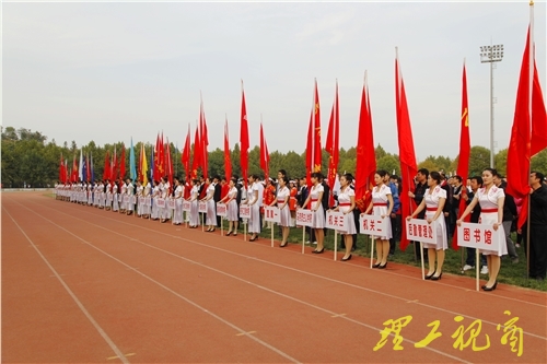 伴着激昂的运动员进行曲,运动员、裁判员入场。运动会总裁判长、体育学院院长李丰祥宣布了运动会比赛成绩。商学院 、交通与车辆工程学院、法学院、机械工程学院、电气与电子工程学院、建筑工程学院、文学与新闻传播学院、计算机科学与技术学院分获学生甲组团体总分前八名;体育教育2012级、运动训练2013级分获学生乙组团体总分前两名;远程与继续教育学院、后勤管理处、图书馆、外国语学院、理学院、校医院、商学院、奥星科技发展有限责任公司分获教工组团体总分前八名。运动会体育道德风尚奖评选委员会主任、党委宣传部部长崔乃林宣读了体育道德风尚奖名单。商学院、国防教育学院、交通与车辆工程学院、电气与电子工程学院、建筑工程学院、机械工程学院、计算机科学与技术学院、法学院获得学生甲组体育道德风尚奖;体育教育2012级、运动训练2013级获得学生乙组体育道德风尚奖;远程与继续教育学院、校医院、图书馆、后勤管理处、交通与车辆工程学院、商学院、建筑工程学院、理学院获得教工组体育道德风尚奖。在阵阵掌声和欢呼声中,主席台领导为获奖单位颁发了奖杯和奖牌。