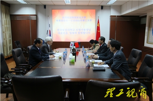 张新义代表学校对牟荣基一行的来访表示热烈欢迎,他向来宾简要介绍了我校的总体情况,回顾了两校自2004年缔结友好关系以来的合作交流成效,他表示,牟荣基一行的此次来访将进一步增进两校间的友谊,加深彼此间的了解,为今后双方扩大合作领域,尤其在推进两校联合培养学生项目等方面打下良好的基础。