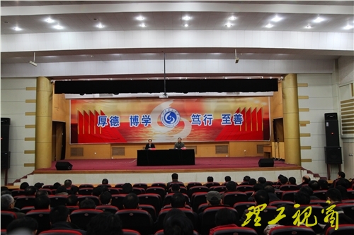 本网讯 1月9日下午,学校在3号教学楼报告厅召开处级干部会,通报本次干部换届聘任工作的基本情况,对做好教育实践活动整改落实、建章立制环节工作提出了要求,并就寒假前和寒假期间相关工作进行了安排部署。校领导都光珍、张新义、张元利、王学真、杜瑞成、张宇声、衣玉琛、张业赏出席会议。会议由党委副书记、校长张新义主持。全体处级干部参加会议。