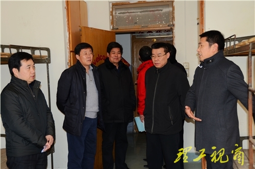 本网讯 为确保寒假及春节期间校园安全稳定,1月13日下午,校领导张新义、张宇声、衣玉琛带领党委(校长)办公室、宣传部、学生工作处、团委、教务处、招生就业处、资产管理处、计划财务处、基建处、保卫处、后勤管理处、离退休工作处、图书馆、网络信息中心等有关部门单位负责人,分三组对实验室、机房、图书馆、锅炉房、学生食堂、学生公寓、大学生事务中心、教工单身宿舍楼、部分学院教学区等重点部位进行了安全检查。