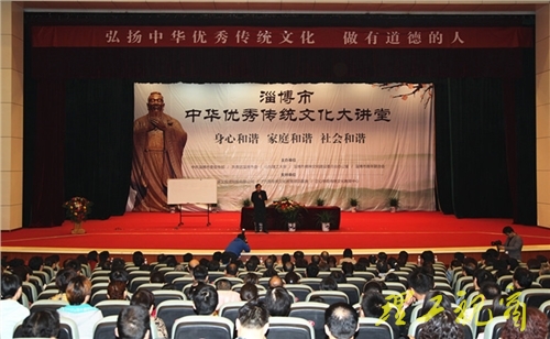 本网讯 4月25日上午,由淄博市委宣传部、团市委、山东理工大学、市文明办、淄博市青年联合会共同举办的淄博市“中华优秀传统文化大讲堂”在我校大学生艺术中心隆重开幕,淄博市委常委、宣传部长郭利民,我校党委书记都光珍出席开幕式。