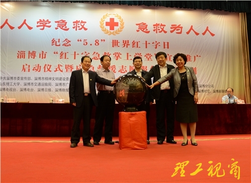 本网讯 5月8日下午,以“人人学急救 急救为人人”为主题的淄博市“红十字急救掌上学堂”宣传推广启动仪式在我校举行。市委副书记周连华,市委常委、宣传部部长郭利民,市人大副主任王法亮,市政协副主席李敏,我校党委书记都光珍、副校长张宇声出席仪式。