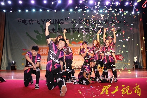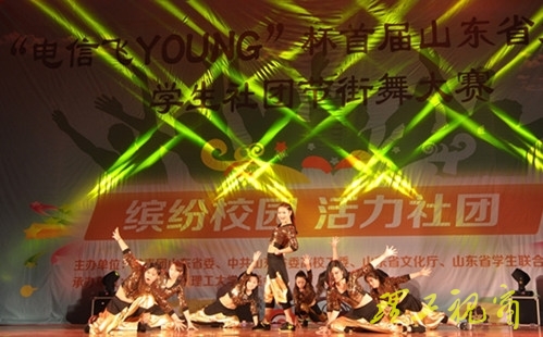 本网讯 “街”力梦想,舞动青春。5月10日至11日,由团省委、省委高校工委、省文化厅、省学生联合会主办,我校团委承办的“电信飞YOUNG”杯首届山东省大中专学生社团节街舞大赛在我校大学生艺术中心大礼堂隆重举行。校党委副书记谭秀森,团省委学校部干部、省学联副秘书长邹见及相关部门、学院负责人等领导嘉宾出席开幕式。来自全省26所高校的47支代表队,300余名大学生参加比赛。