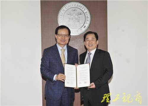 访问中,代表团一行分别与建国大学和大林大学进行了友好座谈,围绕师生互访、学生联合培养等事宜进行了深入广泛交流,并就电气工程及其自动化和环境设计专业中外合作办学项目及韩国留学生培养中的一些具体问题进行了认真磋商。会谈后,都光珍代表学校与建国大学校长宋熹永签署了《学生交流协议书》和《关于赴韩攻读研究生学位协议书》,与大林大学校长南重秀签署了《学生联合培养协议书》。