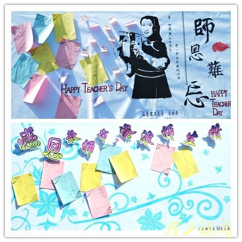 早上7:20校学生会的同学们在各个教学楼门口,将亲手折叠的700支玫瑰花,敬献老师,以表达山理学子对辛勤工作的老师们的敬爱之情,同时,他们在各食堂门口设立展板,让同学们通过即时贴的形式表达对老师的感恩之情,感谢老师们的辛勤工作。