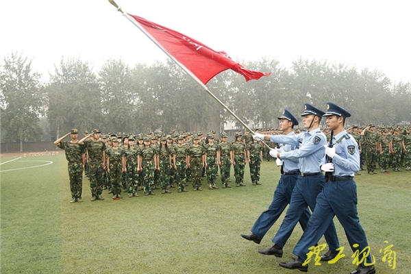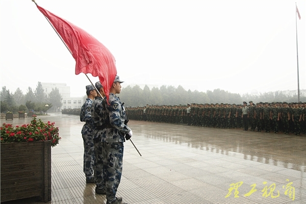 本网讯 方队整齐、军姿威武、口号嘹亮,虽有蒙蒙秋雨,学子愈发精神抖擞、士气高昂,在9月17日上午举行的2014级学生军训总结大会暨阅兵式上,受训学生展示了为期10天的军训成果,充分展现了新一代理工学子的青春风采。