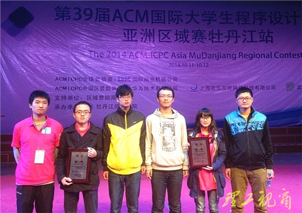 本网讯 10月12日,第39届ACM国际大学生程序设计竞赛亚洲区域赛在牡丹江师范学院举行。我校计算机科学与技术学院11级学生赵鹏、崔哲与尚灿芳组成的“永不言弃”队成功解出四道题目,以总排名23位、省内排名第一的成绩获得银奖。这是我校参加该项国际赛事以来获得的第一个银奖。13级学生尚成飞、孙家才与曾祥硕组成的另一支队伍,获得一枚铜牌。