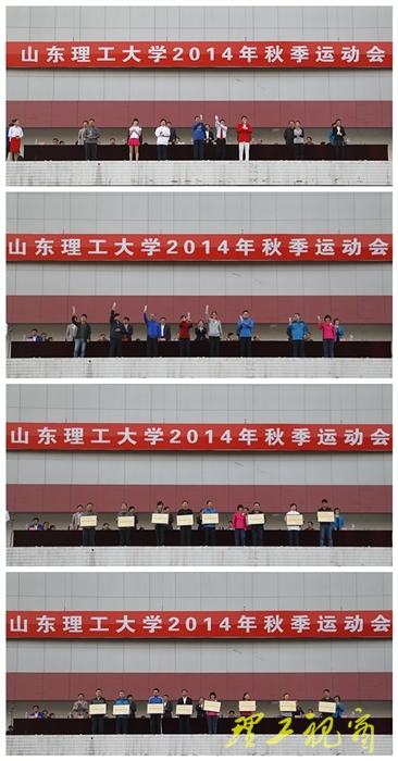 伴着激昂的运动员进行曲,运动员、裁判员入场。运动会总裁判长宣布了运动会比赛成绩。商学院、机械工程学院、交通与车辆工程学院、法学院、建筑工程学院、电气与电子工程学院、农业工程与食品科学学院、计算机科学与技术学院分获学生甲组团体总分前八名;运动训练2013级、运动训练2014级分获学生乙组团体总分前两名;图书馆、理学院、商学院、外国语学院、后勤管理处、远程与继续教育学院、校医院、电气与电子工程学院分获教工组团体总分前八名。运动会体育道德风尚奖评选委员会主任宣读了体育道德风尚奖名单。机械工程学院、商学院、国防教育学院、交通与车辆工程学院、法学院、建筑工程学院、电气与电子工程学院、计算机科学与技术学院获得学生甲组体育道德风尚奖;体育教育2014级、运动训练2014级获得学生乙组体育道德风尚奖;图书馆、校医院、远程与继续教育学院、商学院、理学院、后勤管理处、交通与车辆工程学院、材料科学与工程学院获得教工组体育道德风尚奖。在阵阵掌声和欢呼声中,主席台领导为获奖单位颁发了奖杯和奖牌。
