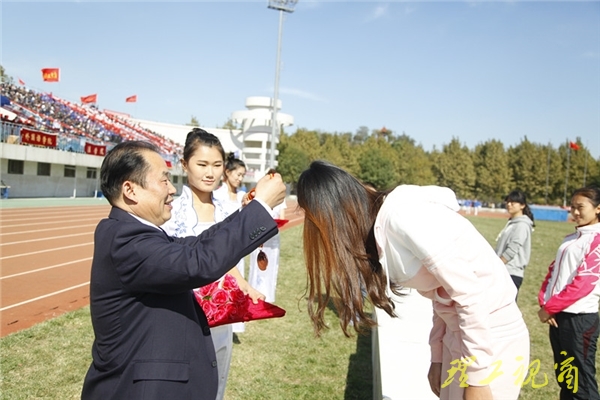 校党委书记都光珍为获奖运动员颁奖