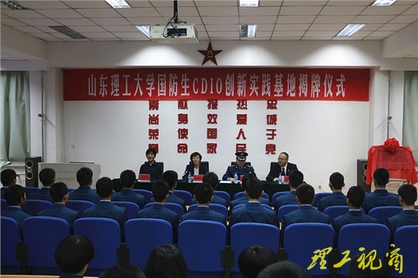 刘国华代表学校对国防生CDIO创新实践基地的成立表示祝贺,她说,我校与济南空军签约11年来,深入研究国防生培养规律,改革创新,突出质量,着力培养军政兼优、掌握现代科学文化知识的新型军事人才。在与空军特别是驻校选培办同志的共同努力下,已顺利为部队输送8届国防生,共计1030人走上部队工作岗位,人才培养质量得到军队好评。在国防生培养过程中,进行了富有成效的尝试与探索,并取得很好的成绩,也积累了经验,国防生创新实践基地的建立,标志着我校国防生创新实践活动从组织到管理又迈出了实质性的一步。希望国防生积极参与,努力提高创新实践能力,早日成为栋梁之才。