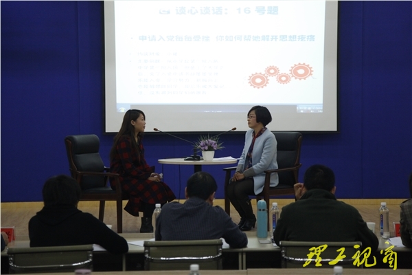 决赛分为主题演讲和谈心谈话情景再现两个环节。参赛选手现场抽题,根据指定主题进行限时五分钟即兴演和谈心谈话。在主题演讲过程中,辅导员们从“如何做好学生的人生导师”、“育人梦—我的中国梦”、“网络,双刃皆锋利”等不同角度,结合工作实际,讲述了他们辅导员工作的经验和感悟。在谈话谈心情景再现部分,辅导员就如何适应大学生活、毕业择业的困惑、学生上网成瘾等问题,和学生进行了现场模拟谈话交流,全面考察了辅导员的沟通技巧和综合运用有关法律法规和教育学、心理学知识对学生进行发展辅导的技能。他们良好的综合素质、娴熟的业务技能,充满正能量、富有感染力的演讲和蕴含着经验、智慧、风趣的谈心方法给在座的评委留下了深刻印象,赢得了现场观众的阵阵掌声。最后,理学院赵佳佳、机械学院郭莹荣获一等奖;生命学院王长恒等4人荣获二等奖;外国语学院朱岩等6人获得三等奖。