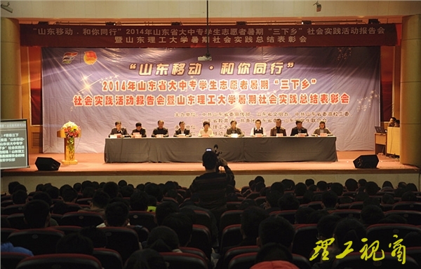 本网讯 11月18日,2014年山东省大中专学生志愿者暑期“三下乡”社会实践活动报告会暨山东理工大学暑期社会实践总结表彰会在三号教学楼报告厅举行。团省委学校部部长郑思洁、副校长张祥云出席会议,淄博团市委、驻淄高校团委及我校党委宣传部、学生工作处、教务处、团委、马克思主义学院等部门、单位负责人,各学院党总支副书记、团总支书记和学生代表参加本次活动。