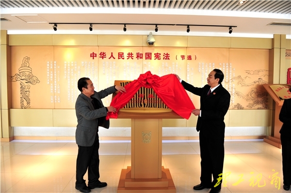 本网讯 11月21日下午,我校理想信念教育基地揭牌仪式在张店区人民检察院举行。校党委书记都光珍与张店区人民检察院检察长司继涛共同为“山东理工大学理想信念教育基地”揭牌。校党委副书记、纪委书记衣玉琛和区检察院检察长司继涛分别致辞。我校部分机关部门直属单位党员处级干部、区检察院全体中层干部参加了揭牌仪式。