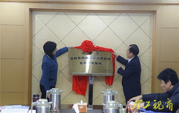 本网讯 12月22日下午,山东省高校思想政治理论课教师发展研究基地揭牌仪式暨山东省高校思想政治理论课教师队伍建设研讨会在鸿远楼九楼会议室隆重举行,山东省委高校工委副书记黄琦、校党委书记都光珍共同为基地揭牌。这标志着我校马克思主义理论学科建设取得新进展。