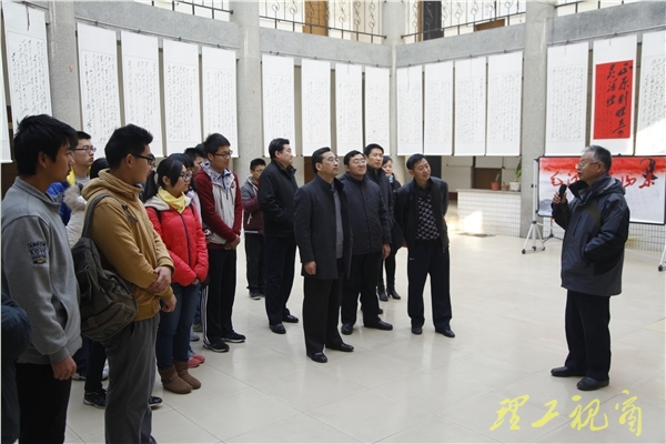 淄博市关工委副主任、原淄博市副市长关玛丽和校党委副书记张宇声为书法展揭幕并讲话。淄博职业学院关工委负责同志、淄博日报等新闻媒体、我校相关部门负责人及师生代表参加了开展仪式。