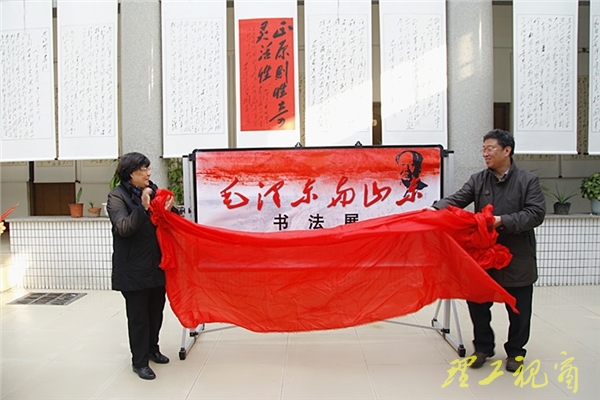 本网讯 12月26日,适逢毛泽东诞辰121周年纪念日,由淄博市关工委、山东理工大学关工委、淄博职业学院关工委联合主办,我校离退休工作处和校书画学会承办的纪念毛泽东诞辰121周年张福信“毛泽东与山东书法展”在我校西校区老干部活动中心开展。