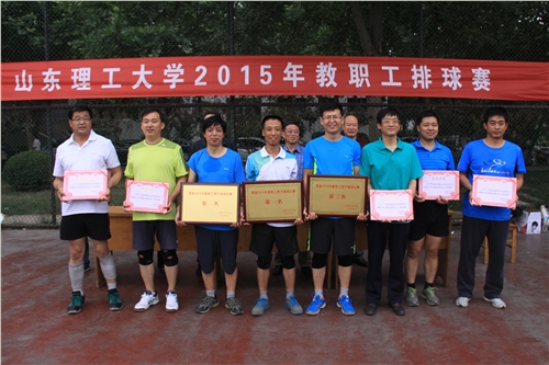 本网讯 6月4日下午,我校2015教职工排球比赛在排球场落下帷幕。经过激烈角逐,机关一队、校医院、外国语学院、商学院、图书馆、机关二队、计算机科学与技术学院、机关四队获得男子组前八名;计算机科学与技术学院、校医院、电气与电子工程学院、理学院、外国语学院、商学院、机关一队、生命科学学院获得女子组前八名。校党委副书记张宇声、副校长王学真为获奖队伍颁奖。